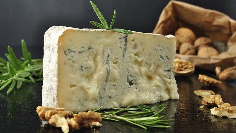Not everyone can be convinced that a moldy, funky French cheese is the best way to upgrade your meat-packed sandwiches, but if you're already on board, we recommend looking for a creamy, soft blue cheese that'll easily spread and or melt into your meat. From Roquefort to gorgonzola, there are a lot of varieties of blue cheese ranging from creamy to crumbly. The key to finding a "good spreader" is looking at the butterfat content; the higher the butterfat, the creamier the cheese. Another tip is to look out for the age of your cheese — younger varieties carry more moisture and are therefore creamier.