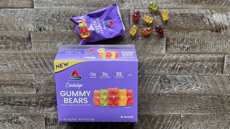 I put my thoughts and feelings about the Atkins diet (and the incorrect spelling of "indulge") aside to try these gummy bears. And honestly, I really wish I could have left these on the shelf because they were downright awful.