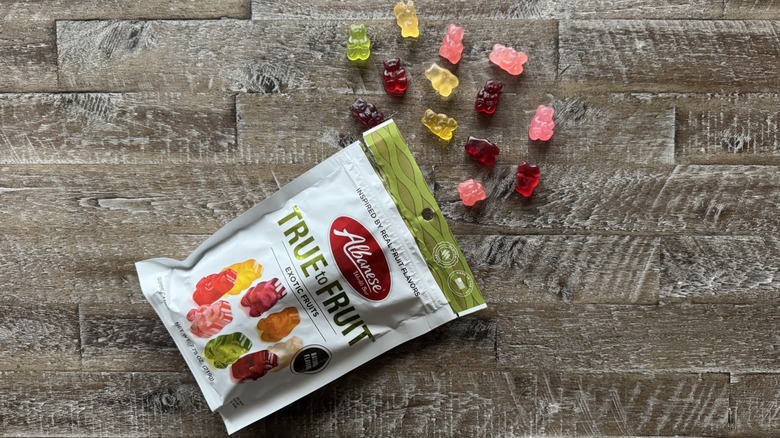 Gummy bears, specifically, are one of the more under-appreciated of this candy class. Their small size — and downright cute shape — makes eating them a pleasure, rather than a chore. You're not gnawing on them for hours like you would a gummy worm, and as long as you pick the right brand, you'll find an explosion of fruity flavor that will satisfy your sweet tooth.