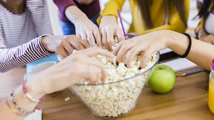 The third way recreates the classic taste of blue cheese and buffalo wings. While popcorn is popping, home cooks can combine melted butter, hot sauce, blue cheese powder, and celery salt in a saucepan before coating popcorn with it. The combination offers a little bit of heat and plenty of savory flavor by bringing the flavors of wings and celery sticks dipped in blue cheese together in a bowl.