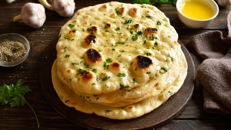 There is a world of incredible and tasty flatbreads out there. With various types of flatbread from Mexican tortillas to Ethiopian injera, it seems like every cuisine has its flatbread of choice. In India, that would be naan. The key difference between naan and paratha, another type of South Asian flatbread, is that the former is leavened with yeast and includes ingredients like yogurt and milk to give it its soft, pull-apart texture and golden color. Naan is often served at Indian restaurants across the United States as a tool to sop up curries and soups, as its starchy and hearty texture makes for an excellent pairing for flavorful broths.
