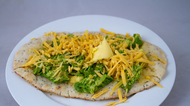 Of course, you can always take the classic nacho topping route with the beans, guacamole, salsa, and the like. However, trying an Indian spin on this dish may be exciting too, instead smothering your nachos with spiced meats, seasoned potatoes, and flavorful chutneys. For this recipe, you will want to oil and bake your naan pieces to ensure that they are crispy. Then, once the chips are finished baking, you can pile them high with your toppings and serve them to your awaiting guests. You may also want to coat your chips in a layer of seasoning before baking them, as this will upgrade the flavor of the otherwise neutral flatbread.
