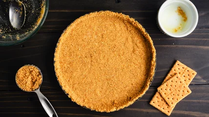 Baking is an art, without a doubt. There are plenty of hard desserts out there, and even the most standard of your average sweets often has at least one complex component. Take pies, for instance. Pie crusts are notoriously hard to handle, especially if you want to really nail that buttery, flaky crust. But pie crust doesn't have to be the insurmountable hurdle it sometimes seems. In fact, the next time you feel like making one, you only need to reach for three ingredients: cookie crumbs, confectioners' sugar, and melted butter.