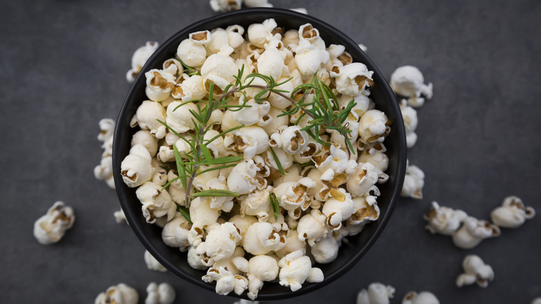 Popcorn connoisseurs are no strangers to chasing deeper, more elaborate tastes. Adventurous foodies have tried blending butter and marmite for an umami-packed popcorn topper. Rosemary's citrus element matches the common recommendation of added lemon (which is in our list of the best ingredients to elevate your bowl of popcorn) and it carries a natural umami. In short, it's worth learning how to incorporate rosemary into tried-and-tested recipes. The good news is that it's easy to add. While woodsy rosemary is a little coarser than softer herbs, it's also more resistant to burning. When cooking popcorn in a pan, the most effective way is simply adding chopped leaves to the oil. Or you could just add sprigs and remove them before popping the corn but this will lead to a milder flavor.