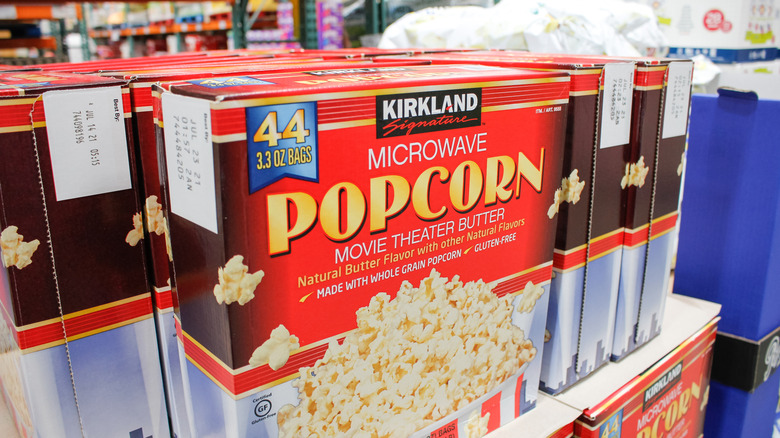 The Ingredient We Didn't Expect To Find In Kirkland Signature Microwave Popcorn