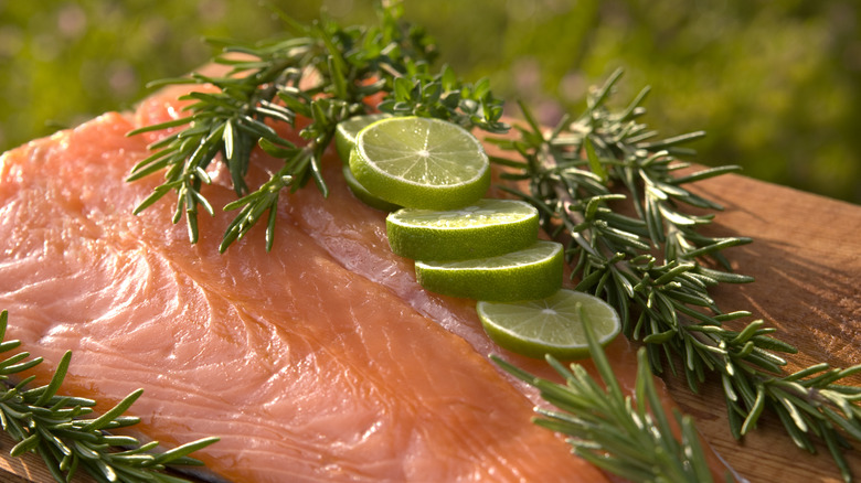 King salmon, also known as Chinook salmon, has an extensive geographical range, stretching from California to Alaska in the U.S. and all the way to Asia. Despite this, populations are threatened. According to NOAA, the quantity of king salmon caught in Alaska accounts for only 1% of all salmon. The rarity of king salmon and the pressure to buy only sustainably caught salmon drives the price up, as does its highly coveted taste and varied uses in cooking. However, it's worth it. The difference in taste between king salmon and other types of salmon, such as sockeye, is marked by the high quantity of omega-3 fatty acids in king salmon, which give it a meaty mouthfeel and melted butter consistency that is second to none.