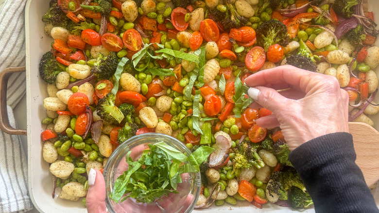 A sheet pan can become your new best friend on busy weeknights, helping you to effortlessly bring together a warm, delicious, and well-balanced meal. This mixed veggie sheet pan gnocchi combines hearty colorful vegetables, pillowy gnocchi, and simple seasonings to create a nourishing dinner that requires minimal cleanup. While most gnocchi recipes involve cooking the pasta on the stovetop, this simplified method lets the oven do the work. The roasting process even gives the gnocchi some caramelized crispy edges, which form a nice textural contrast to their tender interiors. We've used shelled edamame as the protein source, which adds another bright color and subtle flavor to the mix and keeps the meal vegan- and vegetarian-friendly.