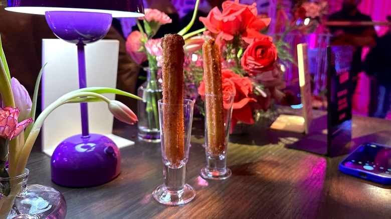 It turns out the concept behind the Birthday Cake Churros is as festive as the dessert looks. Christina Tosi, chef and founder of Milk Bar, said the dessert and collab with Taco Bell is centered around celebrating everyday moments and treating yourself to something sweet. Indeed, the churro release party echoed that sentiment loudly, complete with neon lights, disco balls, and Taco Bell-themed cocktails. Your typical order of Birthday Cake Churros probably won't be quite that ornate, but their sprinkle-themed packaging is certainly designed to evoke a party mood.
