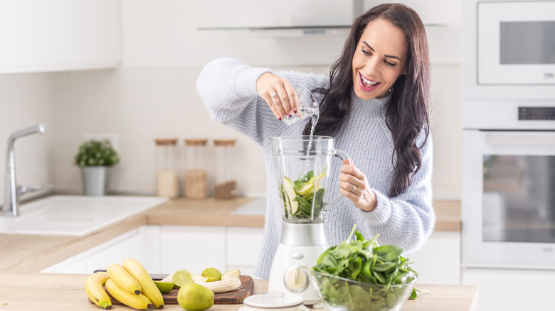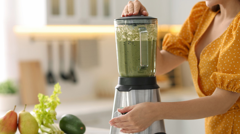 If you're using your blender to purée cooked vegetables or other ingredients for a soup, you may be tempted to speed up the cooking process by blending them with boiling water. However, adding any sort of boiling liquid — or even steaming hot ingredients for that matter — will be a mistake. The reason for this is because steam will build up the pressure inside the pitcher. If the pressure becomes great enough, it could dislodge the lid. Beyond splattering the ingredients all over your countertops and making a mess, this could also pose a safety hazard. Because the liquid and other ingredients will be so hot, they could burn anyone they come into contact with.