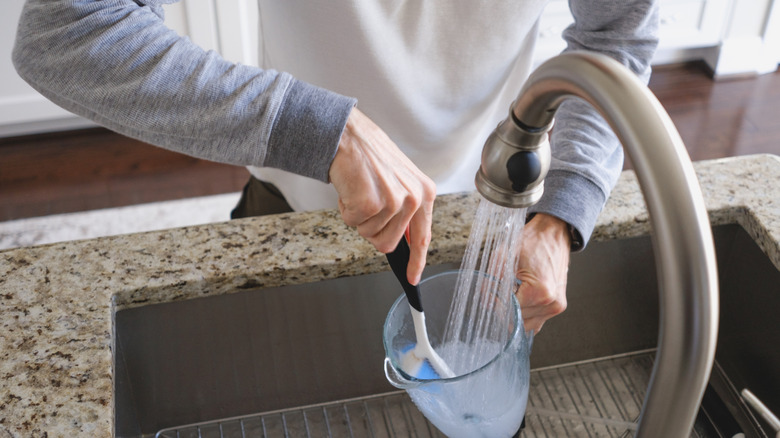 We get it — after you finish blending something you might need to run out the door to get to work, move on to prepping the rest of a recipe, or simply wish to sit down with your feet up. Before you do any of these things, however, you'll want to take a few minutes to clean the blender. Leaving it to clean later will make the task infinitely more difficult. The little bit of your shake or puréed food that was left inside the blender will harden and become caked on. Think about how difficult it will be to chip away at that around the blades. Not to mention, if you leave food residue in the blender for too long, it may also start to smell. These odors could become persistent and very difficult to remove.