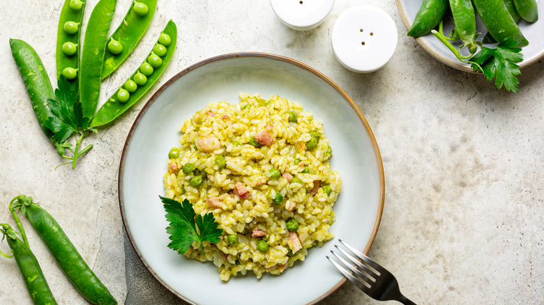 Italians love their rice, as is evident in myriad recipes from across The Boot. While dishes such as risotto are most often associated with the north, in the south and Sicily, you might find recipes such as arancini, deliciously crispy fried balls of leftover rice. Rice is so beloved in the country that Italians have developed their own short-grain, starchy varieties such as carnaroli and arborio which are essential to a proper risotto. The same style of rice is also necessary to prepare its close cousin, risi e bisi. However, purists will insist on making risi e bisi with Vialone Nano rice. That variety creates a creamier texture thanks to its absorptive quality and greater starchiness.