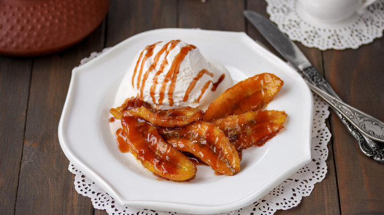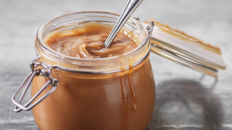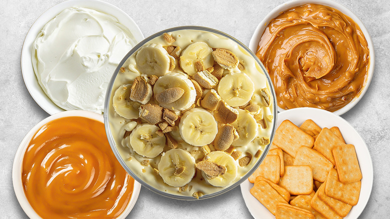Caramel sauce is a one of the more agreeable dessert toppings out there. It runs sweet, sure, but when you get the combination of crunch, creaminess, and sticky sweet caramel, it's positively divine. You can easily achieve these contrasting mouthfeels in a banana pudding by layering it with caramel sauce. While you can opt to use a caramel pudding, the better option is to layer in a store-bought or — if you're feeling adventurous — homemade caramel sauce. The sauce will give you the complex buttery and toffee-like notes that a boxed instant pudding just can't offer. Moreover, you can also add in a salted version of the sauce, which will give you a little more interplay between sweet and savory notes in this dessert.