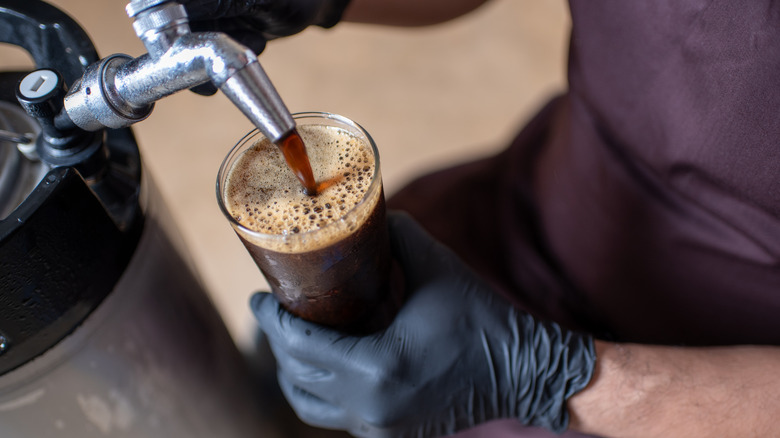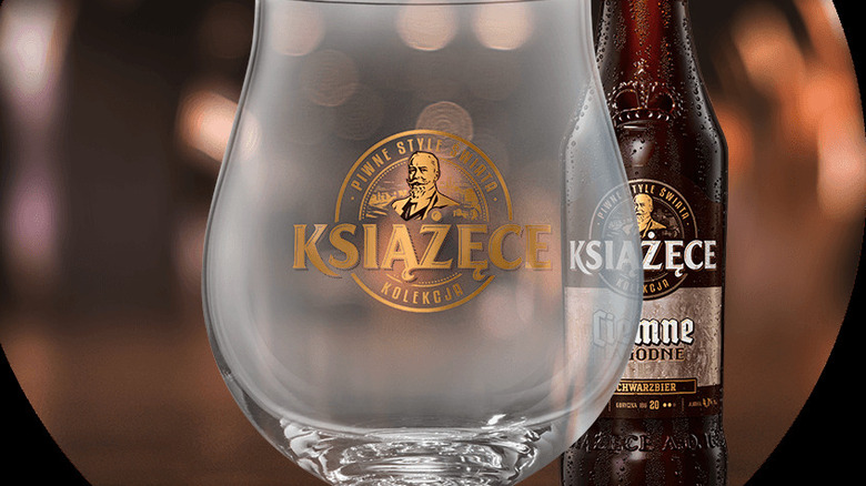 Książęce Ciemne Łagodne is typically served in a snifter glass, which allows drinkers to fully appreciate its bouquet. The shape of the glass helps preserve the beer's refreshing qualities while also concentrating its deep caramel and toffee aromas. The optimal serving temperature is between 41 and 43 degrees Fahrenheit, and pouring the beer slowly helps release its distinctive aromas.
