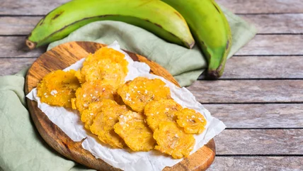 One of the more notable differences between bananas and plantains is that the latter has a thicker skin, making plantains much more difficult to peel –- not the simple pop-the-top then pull-the-skin-off that banana fans are used to. But, when you know the trick to peeling green plantains, working with them becomes a lot easier.