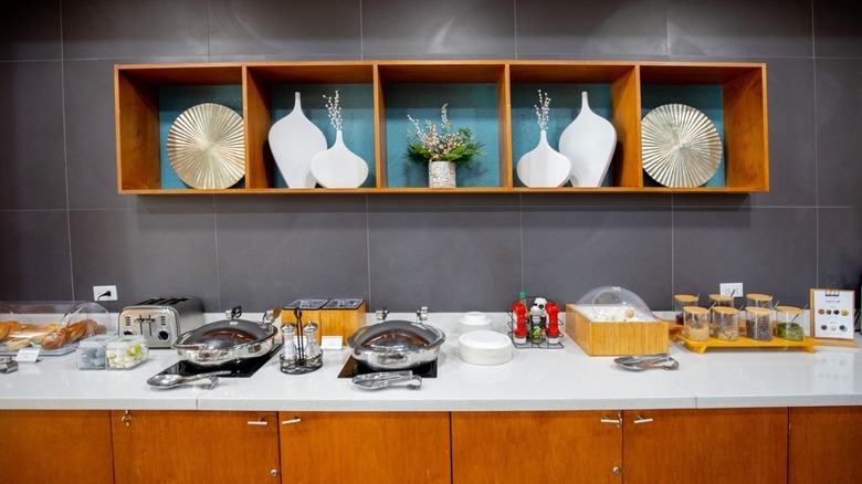 But never fear, because those with a sweet tooth will also be accommodated at the Residence Inn, which serves plenty of oatmeal with various sweet toppings, chocolate muffins, and blueberry scones, which The Points Guy describes as having "big, flakey bites of sugar." Healthy choices are also on the menu here, as pointed out by some reviewers for the Residence Inn Las Vegas Hughes Center, who cited the hotel buffet's scrambled eggs and fresh fruit in particular.