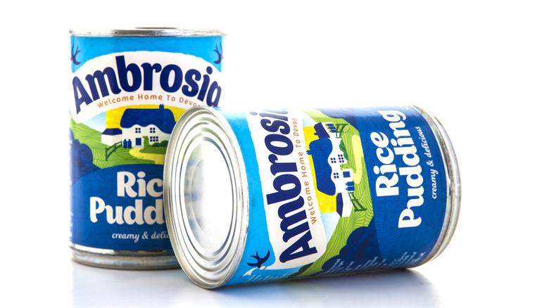 Thick, creamy, and flavorful, rice pudding is another canned treat that can absolutely be classed as a standalone dessert. Warm it up, perhaps add a sprinkle of nutmeg and cinnamon, and you've got a warming, satisfying bowlful. The possibilities certainly don't end there, though. In fact, rice pudding can even be used to make a batch of fluffy pancakes.