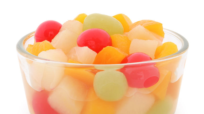 There are endless ways to use a can of fruit cocktail, and this colorful medley of fruit already looks rather dessert-like as it is. But one particularly creative way to enjoy it is folded into a batch of vanilla ice cream. The sweet and tender pieces of peaches, pears, grapes, pineapple, and cherries add moreish bursts of flavor and color to the creamy base, turning a simple frozen treat into something truly special.