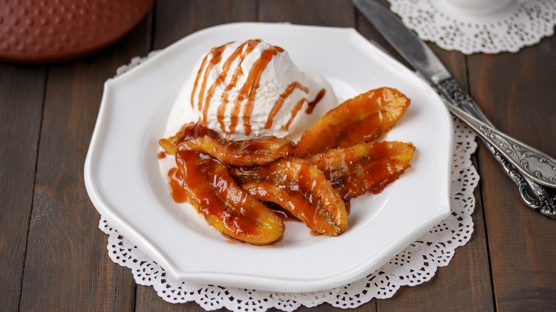 When your bananas are fresh out of the skillet, oven, or air fryer, all that's left to do is add the caramel. Simply crack open the can, dig your spoon in, and drizzle a generous amount on top of the warm fruit. This combo is outstanding as is, but also brilliant with a scoop of ice cream, or when used to top pancakes or waffles for a next-level breakfast.
