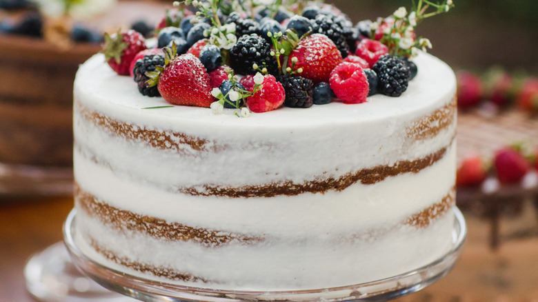 Your best bet is to cut up the cake right before serving it if at all possible, which will usually mean disappearing to the kitchen for a couple of minutes to cut servings. If you opt cut it up in front of your guests and serve them individually at the same time, this leaves you with no ability to add on any of the extra touches that Kline recommends when plating desserts. For this reason, it's best to plate the cakes away from your guests' eyes. "Display the dessert beforehand, then slice in the kitchen before serving," says Kline — that way, your guests can admire the entirety of your elegant dessert before you serve it to them.