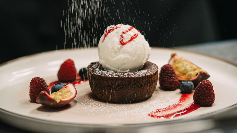 Feel free to top your single-serve dessert as you would normally, with sauces and fruits — just place them directly on top of the dish rather than on the side this time. Be sure to allow your single-serve dishes to cool down significantly before serving them to your guests, or at least give them a heads-up that the dishes have just come out of the oven.