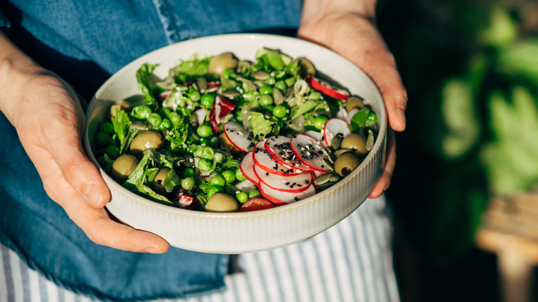 Unsurprisingly, there's not much research out there about whether eating your salad before or after dinner makes any real difference to your digestion. However, Cristina Hoyt, a nutritionist speaking to PhillyVoice, notes that your digestion system "wakes" slowly as you eat. So, following that logic, it's probably better to eat an easy-to-digest salad first rather than tucking into something protein-laden right away. However, she also mentioned that there shouldn't be any harm if you decide to switch things around French style.