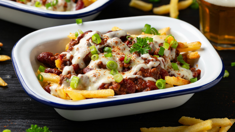 A dinnertime staple, chili is a favorite for its heartiness and rich, spicy flavor. But ladled on top of rice isn't the only way you can enjoy this warming dish. Next time you whip up a batch, why not try repurposing your chili into a delicious topping for a bed of crispy fries? It's a truly satisfying combo both taste- and texture-wise, packing heaps of comforting, savory goodness.