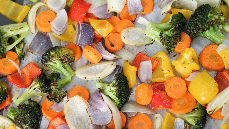 Achieving a crisp result can be a little more challenging with sweet potato fries than with the regular variety, but there's a simple way to keep any sogginess at bay. To make a batch of perfectly crispy sweet potato fries, toss the peeled and sliced sweet potatoes with a mixture of olive oil and arrowroot powder, as well as your seasonings of choice (paprika, garlic powder, and chili powder are great options). The arrowroot powder will create a starchy outer coating that'll enable the exterior of each fry to crisp up beautifully. Now, the fries are ready to bake in the oven or air fryer. Make sure they're arranged in a single, even layer for optimum crunch.