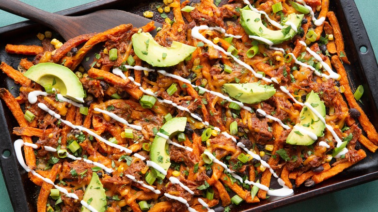If you'd like to give your usual loaded fries a colorful and nutritious upgrade, simply swap out regular fries for sweet potato fries. Their natural sweetness will pair brilliantly with a whole host of savory, spicy, and fresh toppings, so they'll serve as an equally versatile base for a variety of flavor combinations.