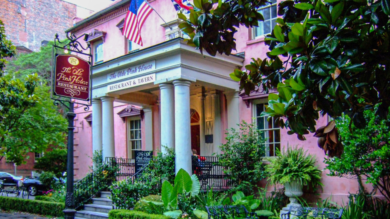 Its first culinary foray transformed the structure into The Georgian Tea Room in the late 1920s, and finally, in 1971, this time-tested cradle of Savannah's history evolved into The Olde Pink House Restaurant. With renovations, additions, and even rebuilt sections after a 2018 fire, it stands today as a testament to resilience and good bones. It's pink coloration is now carefully maintained, but that wasn't always the case. Per architectural trends after its construction, the exterior received a coating of white plaster, but the color of the original underpinning red bricks seeped through the plaster over and over again, resulting in its trademark appearance today: an unmistakably prominent pink house.