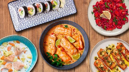 If you find yourself repeating the same old dishes, it might be time to give your go-to salmon dinner an upgrade. Thankfully, we've got plenty of inspiration for you. Below are 13 salmon dishes from different corners of the world, offering new ways to enjoy this protein-packed staple. Perhaps you're seeking an elegant showstopper for a dinner party, in which case, salmon en croute is an exceptional option. Or, if you're after something quick but big on flavor, umami-packed salmon yakitori is sure to hit the spot. There's even a traditional Finnish salmon soup, for the ultimate rich, creamy comfort food.
