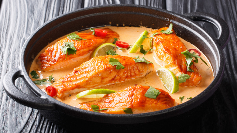 Your options certainly aren't limited to chicken or beef when whipping up a homemade curry. Salmon can serve as an excellent alternative, with its rich, flaky texture pairing fantastically with bold spices and creamy sauces. Found across various cuisines, salmon curry is a wonderfully comforting option with endless possibilities for customization, which each dish enhancing the fish with their own unique combination of flavorful ingredients