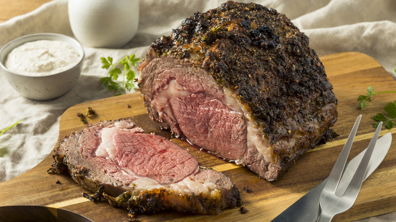 You're probably thinking: "What's a Reuben sandwich without corned beef?". Well, the great thing about sandwiches is they're endlessly adaptable. Cooking corned beef at home can be quite a laborious affair, and sometimes, canned corned beef just doesn't hit the spot. Leftover prime rib offers an easy, effortless shortcut. Although not entirely the same, it does have that meaty richness you often search for in a Reuben sandwich. Where corned beef leans on brine and salt for impact, prime rib brings a savory depth and smokiness that makes regular Reuben sandwiches pale in comparison.