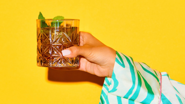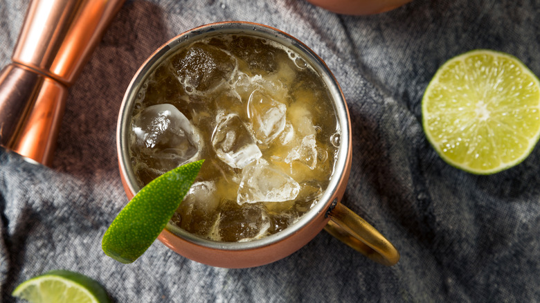 You may be more familiar with the Moscow mule, a delightfully effervescent drink that provides the perfect balance between sweet and spicy ginger beer, refreshing lime, and smooth vodka. Well, a Kentucky mule is the same thing, except you swap out the vodka for bourbon. While you're not likely to find a mule-appropriate copper mug in the skies (which is a shame because the copper keeps the drink icy cold), in-flight services are well-equipped with all the ingredients you'd need for a pretty passable Kentucky mule.