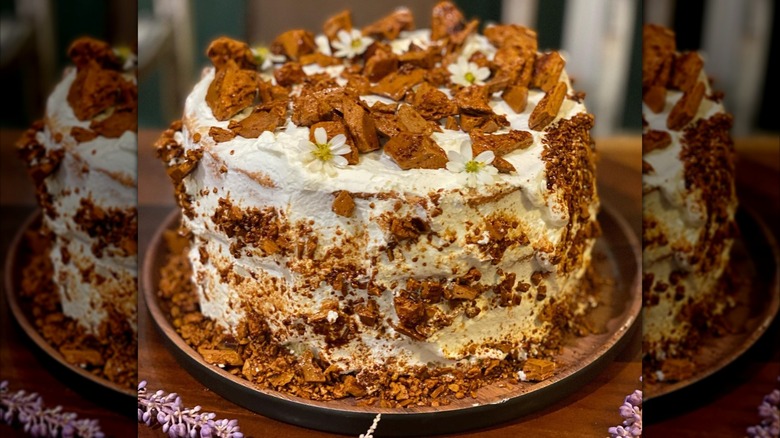 This particular dessert was first created by a popular San Francisco bakery called Blum's. The shop first opened in 1892 and moved to Union Square in 1907 where it attracted dessert lovers from all over the Bay Area. While it made a variety of exquisite cakes and other desserts, the treat that attracted people from afar was its coffee crunch cake. It's known for its light, airy sponge layers and whipped cream frosting, topped with crunchy coffee-flavored honeycomb toffee.