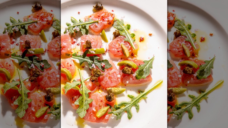 Let's say you're preparing a raw fish crudo, and the only seasoning you want to add is finishing salt. That's fine, but you'll want to be just as judicious with it as you would for a dish that may already have some seasoning. Finishing salts pack a lot of punch, and on a delicate dish like crudo, having too much salt may take away from the fresh, bright flavor of the fish itself.