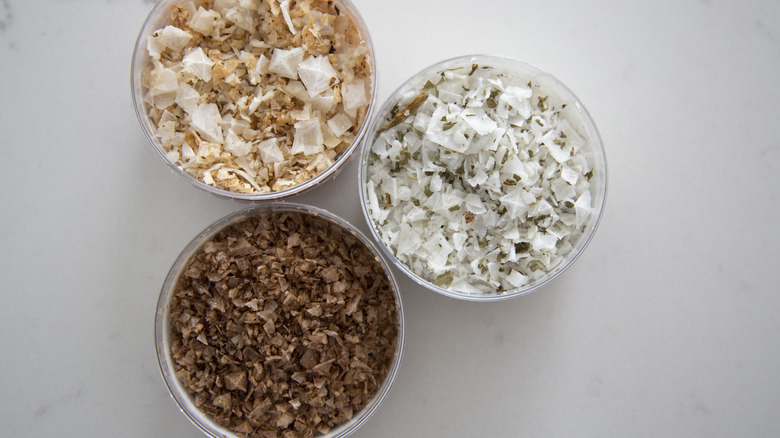 If standard table salt, like Diamond Crystal or Morton's, is your regular mealtime flatware, consider finishing salt your fine china. Finishing salt is generally more delicate in flavor, scent, and texture compared to all-purpose cooking salt. It's meant to enhance a dish prior to serving, bringing all the flavors of the dish out. And when it comes to the types of finishing salts available, the options feel limitless. Maldon, fleur de sel, Celtic sea salt, and Himalayan pink salt are just some of the finishing salts available, and depending on the flavors you're cooking, you're certain to find one that will make you feel like the Goldilocks of your kitchen — it'll fit just right.