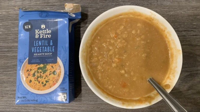 Boxed soups are a pantry staple for good reason — they're convenient, easy to heat up, and often come with a wide range of sizes and flavor combinations. But not all boxed soups are a win. In our ranking of nine popular boxed soups, Kettle & Fire Lentil and Vegetable Soup landed at the bottom of the list. While the brand is known for its bone broths and nutrient-dense offerings, this particular soup left us scratching our heads.