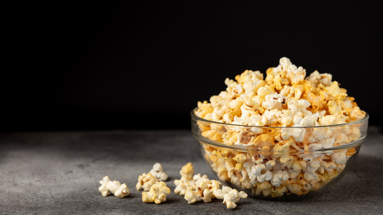 The unanimous go-to movie snack, popcorn rarely fails to hit the spot. Light and airy snackable morsels make for the perfect bite-sized treat, but it's arguably, to a certain extent, the toppings that really make a bowl of popcorn great. Classic combinations like butter and sugar are pretty fail-safe, and plain salted popcorn is a pretty safe choice, but there's no denying that these simple mix-ins can begin to feel a little repetitive after a while. If you're a fan of salty popcorn and are looking to step things up, consider coating your popcorn in Marmite for the ultimate umami snack. With a deep, rich flavor and satisfying crunch, it's the key to turning your movie night munchies into something utterly indulgent.
