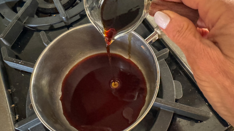 - Add ¼ cup tamari to a small pot and cook on medium-low for 5 minutes.