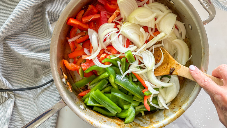 Step 9: Cook the onion and peppers