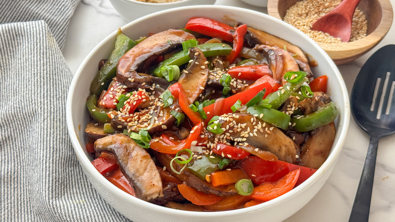 Make an Asian Buddha bowl by serving the mushrooms over noodles along with extra vegetables like shredded carrots, steamed shelled edamame, sauteed baby bok choy, steamed broccoli, or shredded purple cabbage. If you want to change up the sauce, mix together peanut butter, soy sauce, lime juice, sriracha, and maple syrup to infuse new flavors.