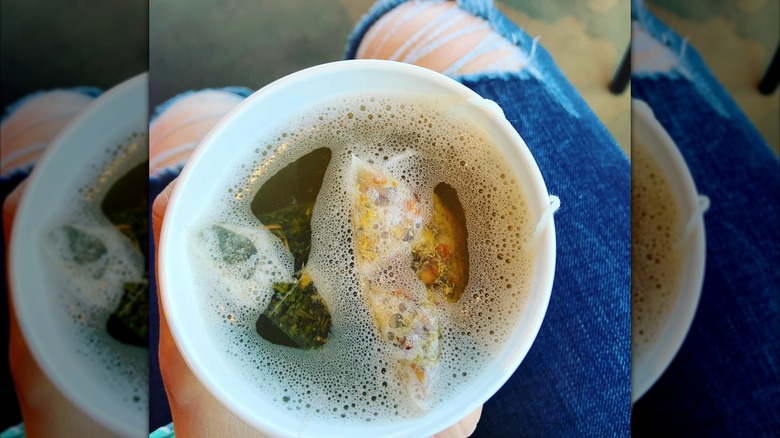 Despite their similar names, each of these teas offers a unique take on the herbal favorite, whether it's hints of floral notes, a twist of citrus essence, or simply a well-crafted blend of mint leaf varieties. Not only that, but these teas all have varying amounts of caffeine and sugar, which makes it vital for those with sensitivities to know the differences between each of these beverages. With this in mind, we're here to break down and explain all three of Starbucks' mint tea offerings. We hope this gives you some confidence in your next order, allowing you to know exactly what's in your cup the next time you visit.