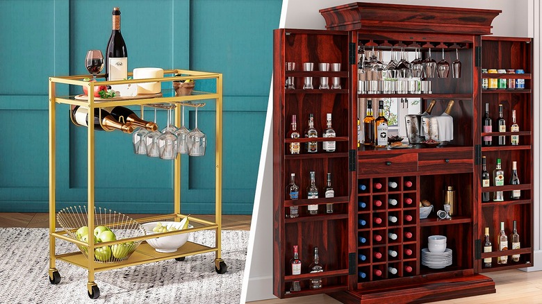 Of course, the higher cost of a cabinet means you're getting a more durable item with a larger storage capacity — one that may even come with additional features. So while the winner when it comes to cost will be the bar cart, you'll also likely need to replace it sooner than you would with a cabinet. Whichever one you choose, it's a good idea to spend that little bit extra to get something that truly fits your space.