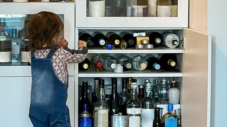 The open design of bar carts means the bottles are usually easily accessible, making it simple for children (or anyone else) to grab a bottle without supervision. To be fair, some liquor cabinets can also be accessed by children, but many come with an installed lock, are too high to reach, or can have a lock added. Additionally, bar carts have a greater potential to tip over. If someone were to bump into or pull on one, there's a genuine risk that it goes tumbling down. That isn't just a potentially dangerous mistake, but an expensive one, as well.