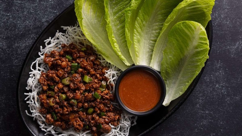 Perhaps one of the most well-known appetizers on the P.F. Chang's menu is the chicken lettuce wraps. We certainly understand the appeal: It's a relatively light starter that packs a lot of flavor in a simple bite. What's not to like? But if you ask us, you should probably think twice about ordering these lettuce wraps. First of all, some report that they come out looking pretty sparse. You may get plenty of lettuce, for example, but if there's not a lot of the chicken mixture there to stuff those lettuce leaves with, what's the point?