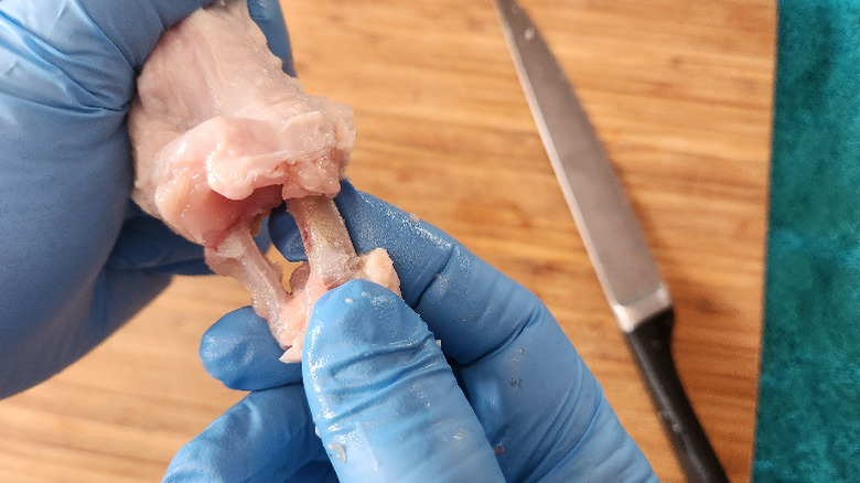 Consider Houston eatery Stuff'd Wings, which specializes in — yes — stuffed chicken wings. Before you can stuff a wing, you need to debone it, and that's a task that a lot of home cooks will cheerfully allow someone else to do for them. Which is a shame, because it's actually not hard. In fact, deboning things for yourself is a really useful skill that can stretch both your grocery budget and your boundaries as a cook.
