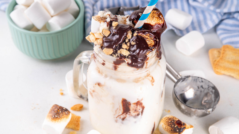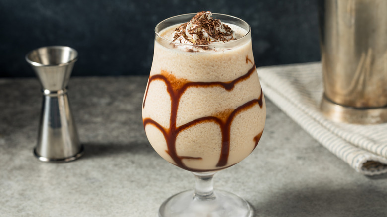 If you like your mudslide to be more decadent, you can emphasize the dessert quality by adding things like ice cream, marshmallows, chocolate bar pieces, Oreo cookies, and even peanut butter cups. How you garnish the drink is part of that fun, so don't forget to decorate the top with whatever you're mixing into your drink for added pazazz.