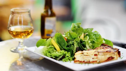 "The funky natural yeast notes in Saisons would help balance out the heavier aspects of the Niçoise — the tuna, eggs, and olive oil," he says. That funk comes from the way farmhouse beers are traditionally brewed, with the rustic conditions introducing natural and wild yeasts that contribute strong fermented flavors. This process can create a lot of unique notes, and saisons and farmhouse ales can even be slightly sour or spicy, but any of those flavors will only contribute to the refreshing flavors that make it perfect for Niçoise salad. And Cusack had one more fun reason, telling us, "you'd be pairing a French salad with a French style of beer!"