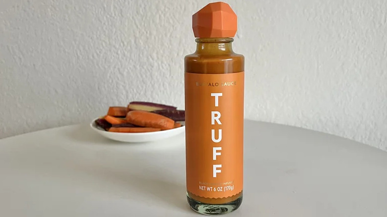 Hot sauce is the true chameleon of the sauce world. It pairs beautifully with classic dishes like perfectly crispy fried chicken, ground beef street tacos, and just about any type of cooked egg. It makes a surprisingly delicious, spicy addition to sweet treats like ice cream and is so flavorful that it can transform any dish into a truly amazing culinary experience. Hence, there is a vast selection of hot sauces available to purchase. From beloved brands like Tabasco and Cholula to celebrity hot sauce brands, each hot sauce has its own distinct flavor and spice intensity. And some brands have sauces that are so hot they should be deemed bonafide mouth-burners. Luckily, there are some hot sauce brands that have mastered the art of creating a sauce that beautifully marries heat and flavor. One company that has perfected this is Truff. Paired alongside black truffles, Truff's buffalo sauce is truly in a league of its own.
