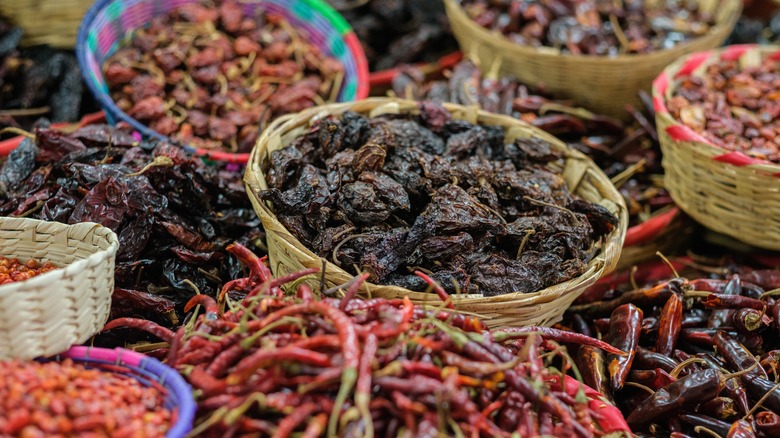 The issue is knowing what these spices are actually named after. You may think that chili is a pepper, but it's technically not — although common usage has made that the case in the United States. Chili refers specifically to the Southwestern stew, not peppers. While it usually does have some ground peppers in it, it's a mix of spices that originated as a flavoring for chili recipes, which is how it got the name. Chile is the technically correct way of referring to the peppers, as in "habanero is a type of chile." Confused yet? You're not alone, it's a mistake a lot of people in the U.S. have been making for years. And while both contain chiles, the two spices can actually lend pretty different flavors to your dishes.